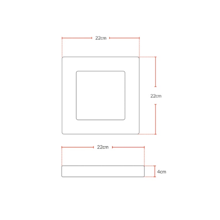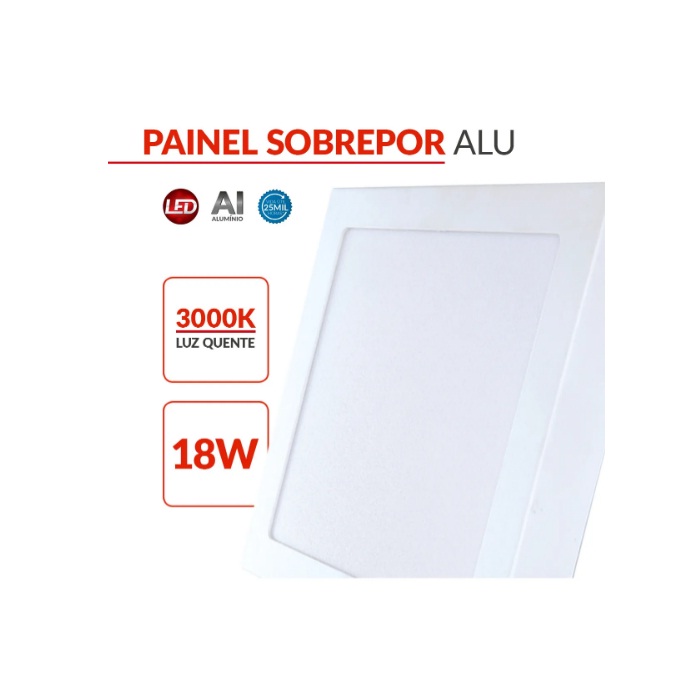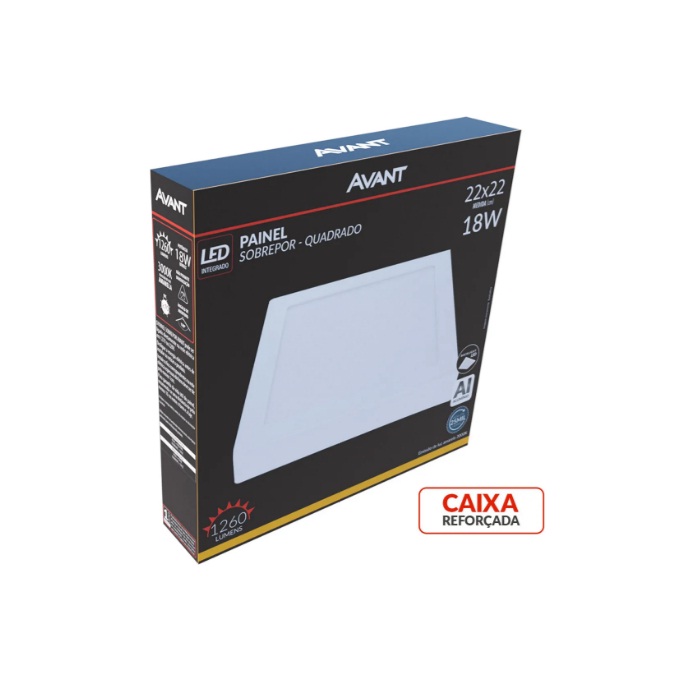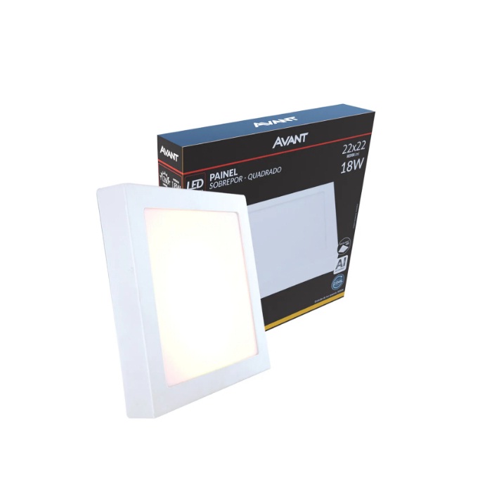 Painel LED Alu 18W 3000K Sobrepor Quadrado 22cm Bivolt Avant Estrutura Branca