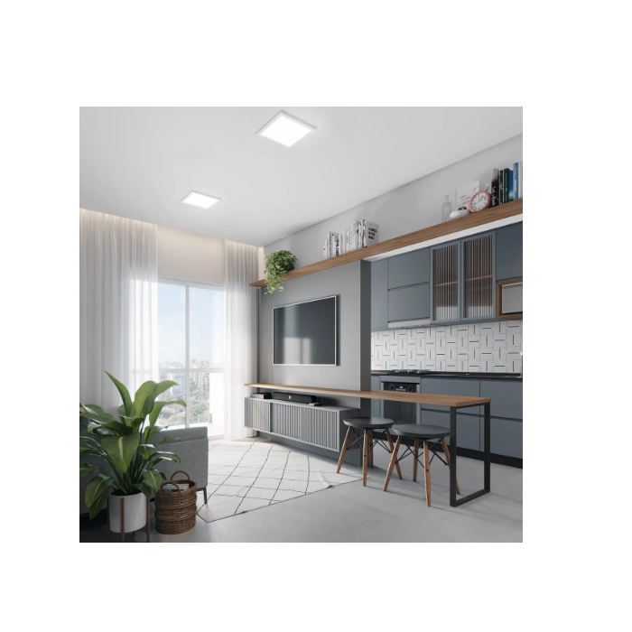 Conta com instalação de sobrepor, funcionamento bivolt (110V/220V) e distribuição uniforme da luz, evitando ofuscamento e garantindo conforto visual.