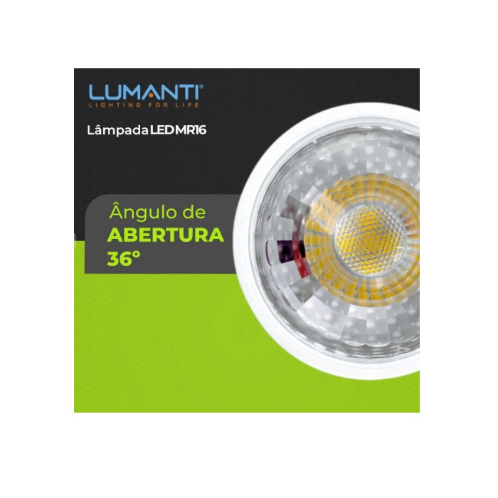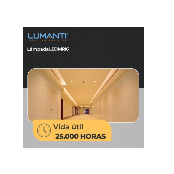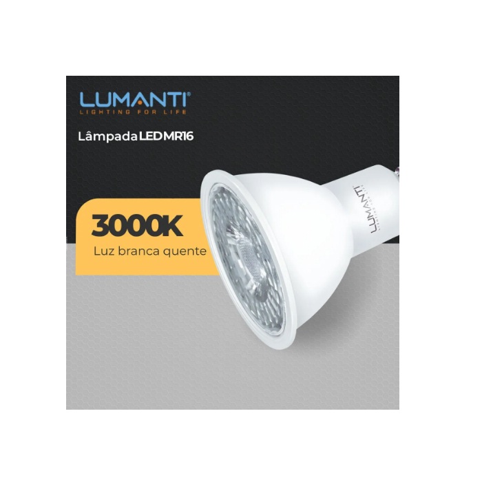 A Lâmpada LED MR16 7W Lumanti é ideal para projetos de iluminação que exigem eficiência, economia e conforto visual. Com temperatura de cor 3000K (branco quente), proporciona um ambiente acolhedor e sofisticado, perfeita para residências e espaços comerciais.